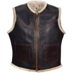 This sheepskin lined vest from Aero Leathers was loosely inspired by 1953 classic “The Wild One” starring Marlon Brando. This sheepskin leather vest was also inspired by the cut down WW2 Military Sheepskins worn by bikers in the late 1940s, and as such, we’ve given this one the title of “Outlaw” to reflect the consensus of opinion towards the young bikers from the immediate post war years.